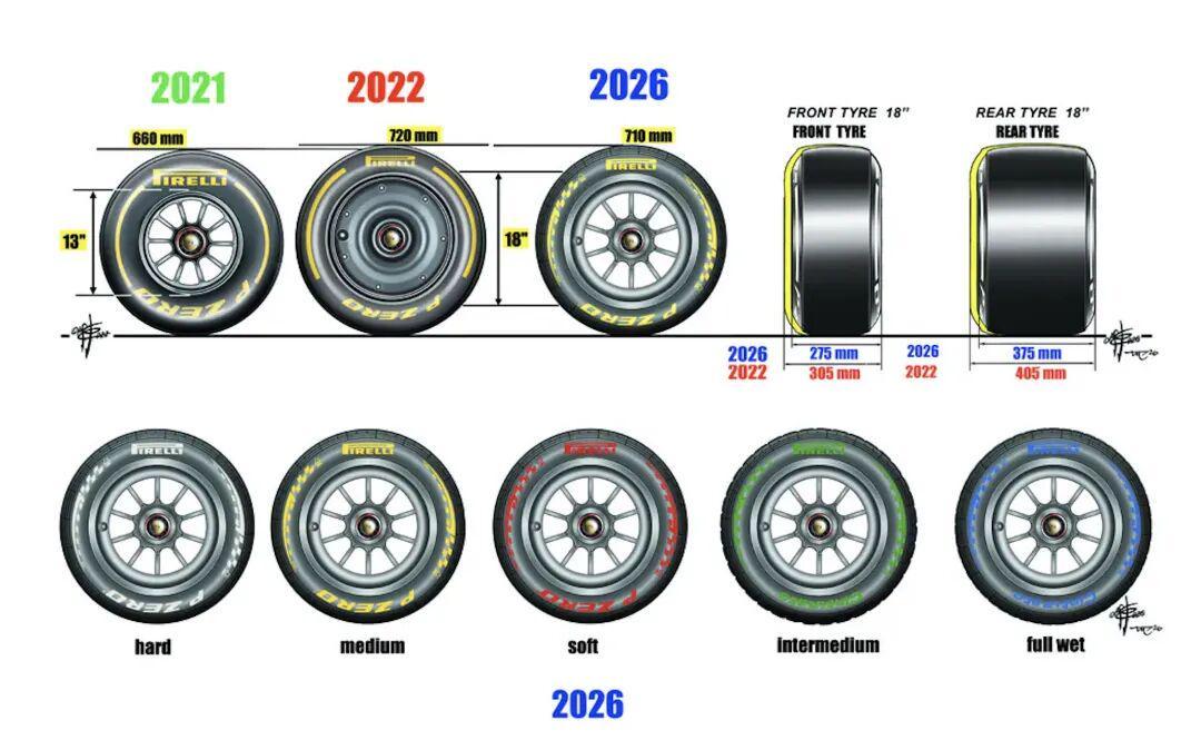 鉴于近年来F1赛车尺寸过于庞大,超车因此变得困难,2026年F1赛车终于迎来“瘦身”,轴距缩减了20cm并减重30kg,同时缩窄轮胎宽度,这使车手在入弯时能开得更加激进和有更多的切弯角度可以选择,尤其在摩纳哥及新加坡街道赛的窄弯中赛车将更加灵活,而不像此前798公斤的“宽体长轴巨兽”横亘于赛道中,使超车变得困难。