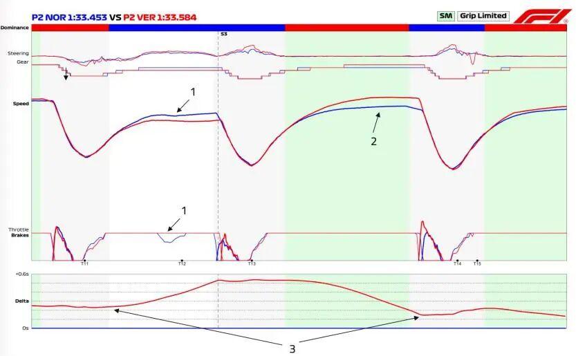 维斯塔潘在T13-T14之间获得速度优势